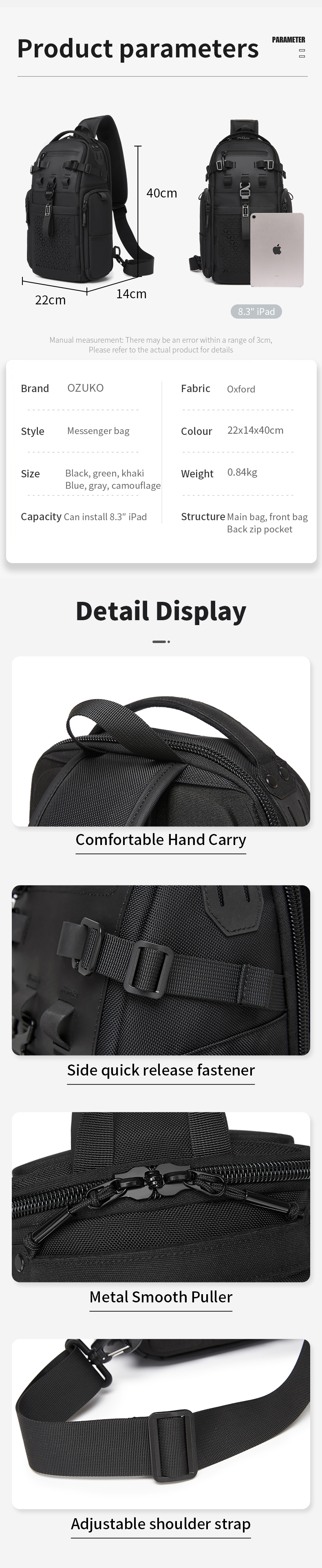 OZUKO 9844 Business Casual Messenger Bag Men's Versatile Crossbody Pack Large Capacity Waterproof Sling Bag