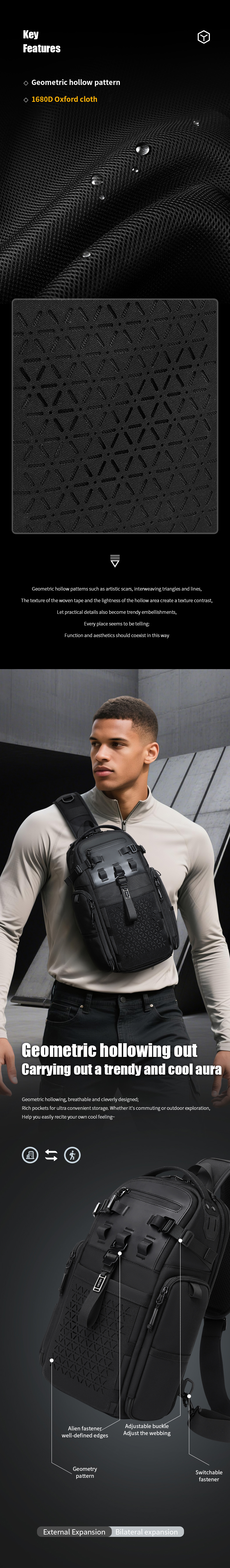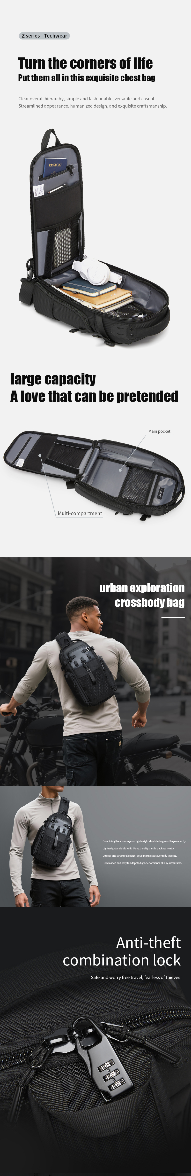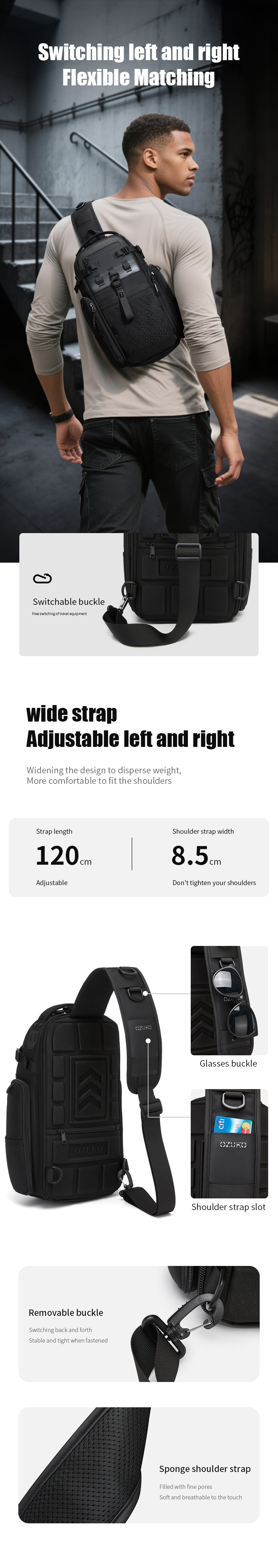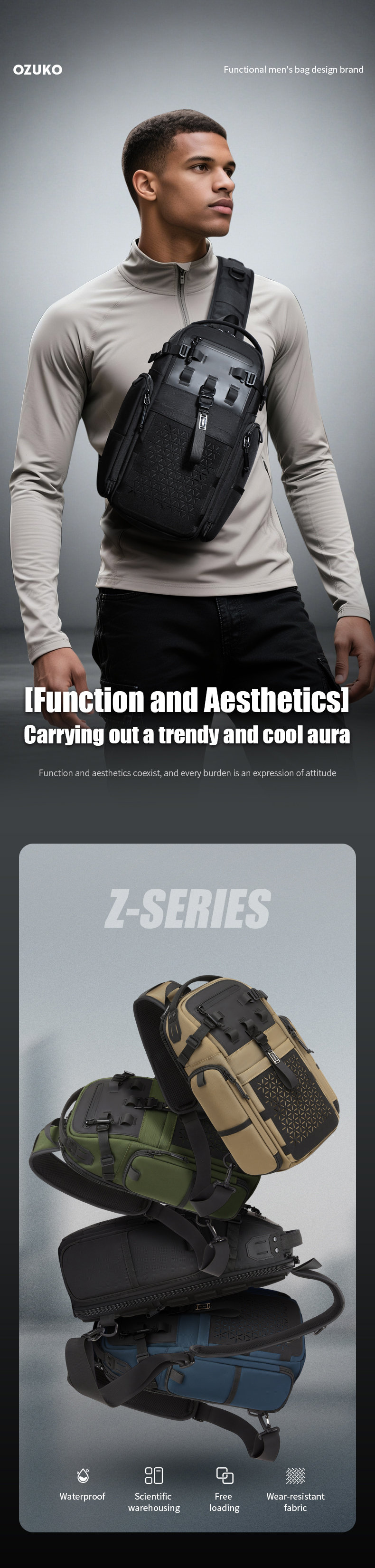 OZUKO 9879 Men's Polyester Water-Resistant Sling Backpack Adjustable Shoulder Strap Sling Bag